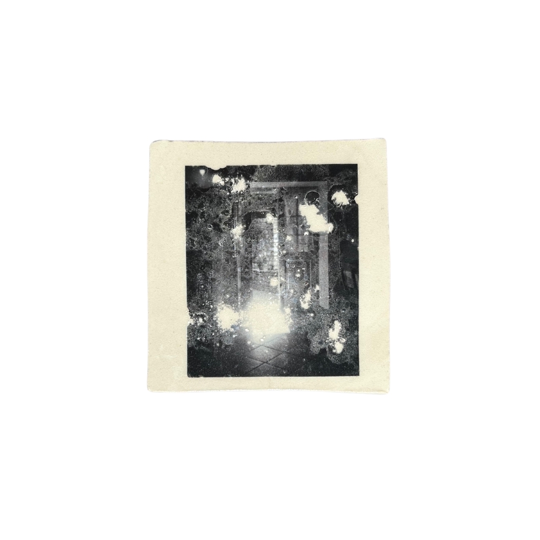 Outcome of using grit under the surface of the decal~ using an image of my own home to destroy the surface. Playing on the idea of my fragmented memory - it looks almost as if parts of my memory are missing